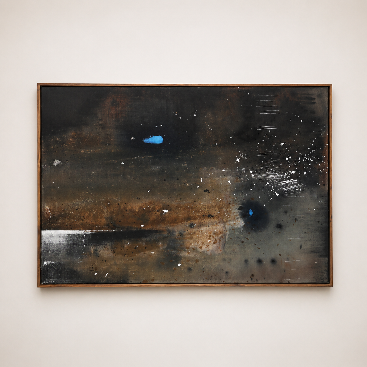 An exquisite abstract expressionistic interpretation of what evenings in the Karoo look like! Framed with kiaat.