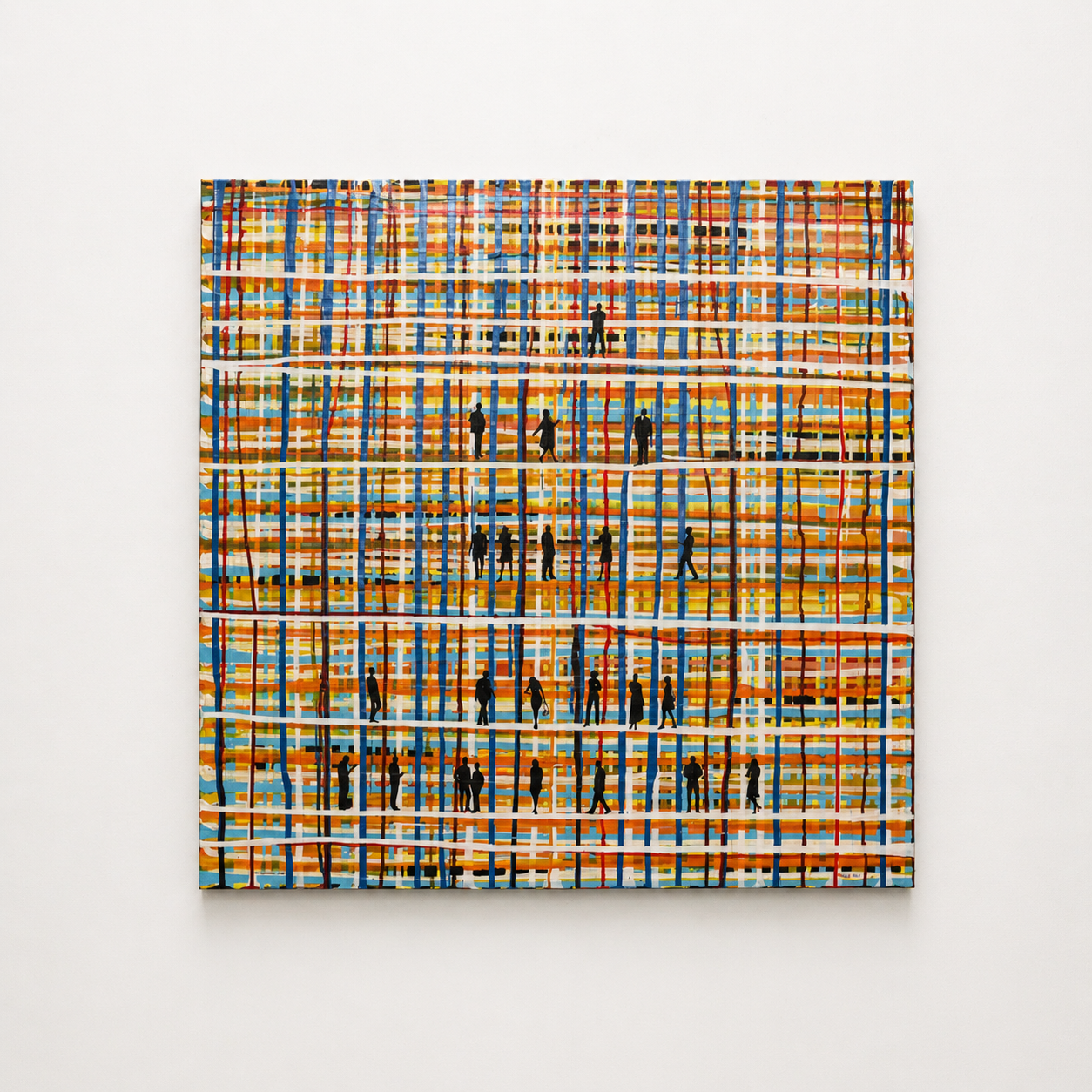 A quirky geometric abstract grid composition – mixed media on canvas.