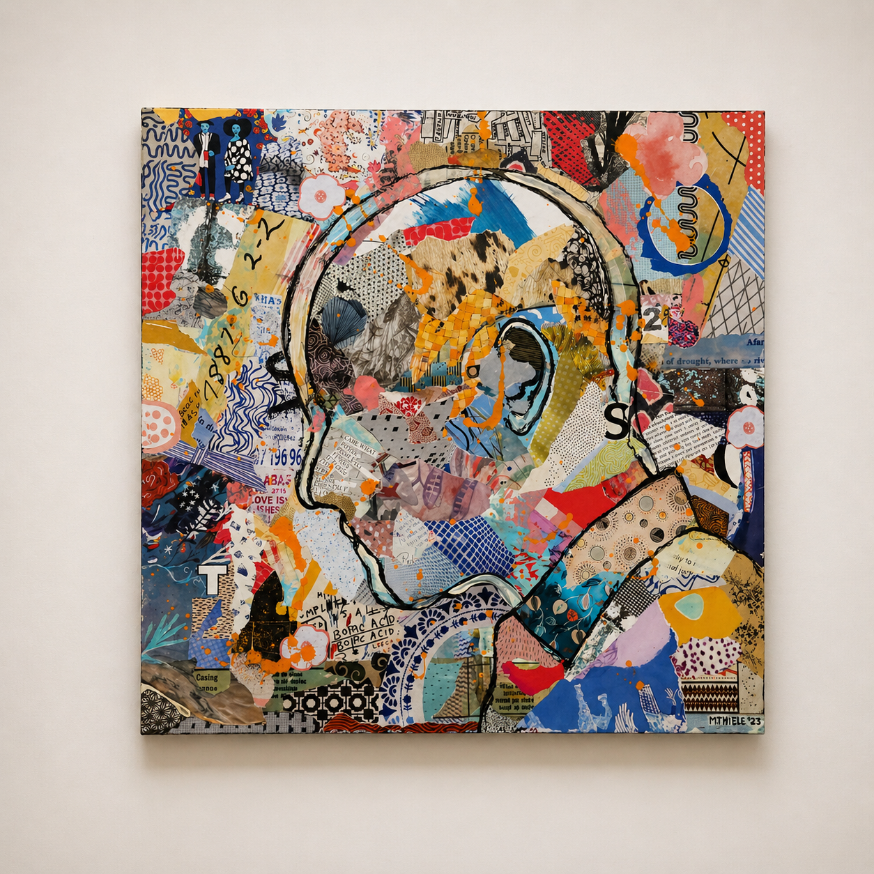 An intricately perfected mixed media collage study.