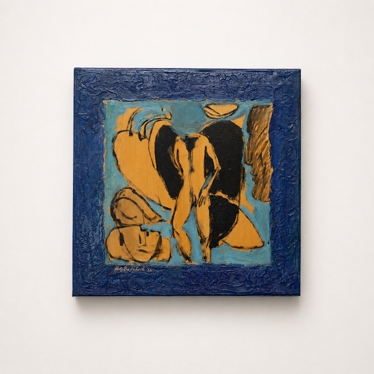 I love this work! Mixed media on canvas. Philip’s style is best described as contemporary figurative abstraction.