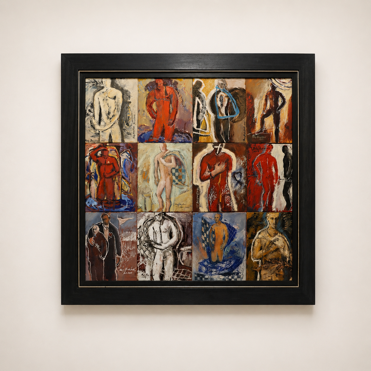 An exceptional composition of 12 individual oil studies on canvas. Philip’s style is best described as contemporary figurative abstraction.